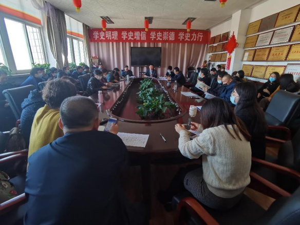 2022年工作。会议由党委书记郭晋南主持并传达会议精神,班子成员及全体教职工参加会议。