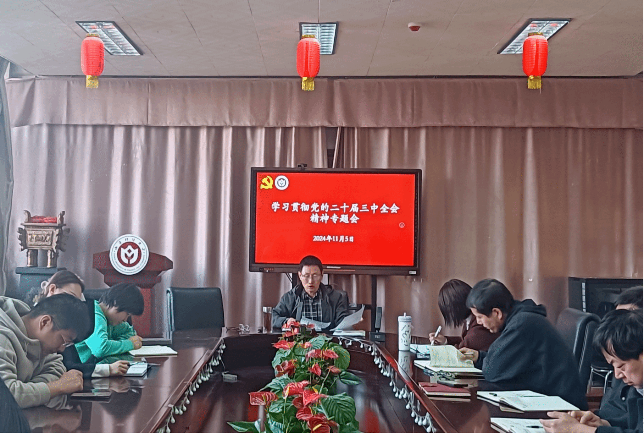 最后,郭书记强调,党的二十届三中全会是在中国式现代化全面推进国家强盛、民族复兴的关键时期召开的一次具有里程碑意义的重要会议。全会审议通过的《决定》为进一步全面深化改革推进中国式现代化进程提供了科学的总体部署,是新征程上全面深化改革的纲领性文件。全院各党支部必须将深入学习贯彻党的二十届三中全会精神作为当前和今后一个时期的重大政治任务,深入学习、细致理解、明确应用,在思想上、政治上、行动上始终同以习近平同志为核心的党中央保持高度一致。