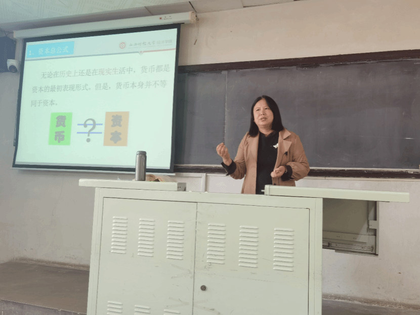 景朝梅老师作为第六次读书活动的领读者,带领师生们共同研读了《资本论》第一卷第四章的相关内容。通过研读马克思在《资本论》中对于货币转化为资本和劳动力转化为商品历史过程的分析与强调,大家对马克思在研究资本主义生产方式时所采取的历史唯物主义分析方法有了更直观的把握。在对“资本”范畴的理解上,景朝梅老师引导大家对比了马克思对资本的认识与西方经济学家对资本认识,让大家进一步体会到马克思主义经济学的科学性。